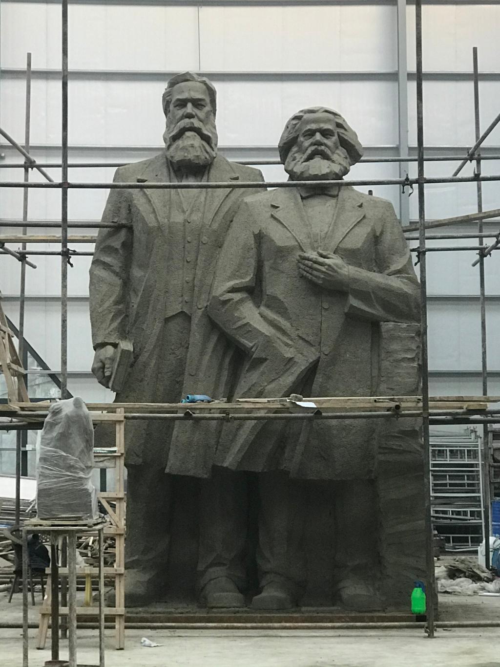 马克思主义是关于无产阶级和人类解放的学说,即人的解放学。是无产阶级及其政党十分严整而彻底的世界观,是无产阶级解放运动的理论,是无产阶级根本利益的科学表现。在资本主义生产方式已经形成、无产阶级和资产阶级的斗争日益尖锐化的时期,国际无产阶级领袖和革命导师卡尔·亨利希·马克思和弗里德里希·恩格斯创立的思想体系,无产阶级政党的指导思想的理论基础。故河北美术学院在红色文化园的入口放置一件马克思、恩格斯雕塑。