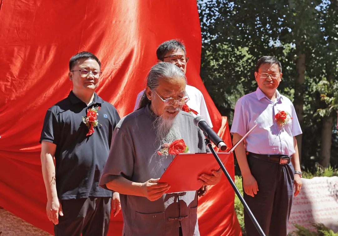 马克思、恩格斯雕像是由河北美术学院雕塑院为献礼党的二十大和庆祝河北美术学院建校20周年设计制作。雕塑人物高5米、底座高1.5米、总高6.5米;长3.5米、宽1.8米,体积35立方米,重量约70吨。仪式上,学校举办者、校长甄忠义代表学校对嘉宾表示欢迎,并简要介绍了学校基本情况。他指出,马克思、恩格斯雕像是学校献礼党的二十大的精品力作,学校将继续加强红色文化园建设,高标准打造一流的党建和红色文化教育基地。