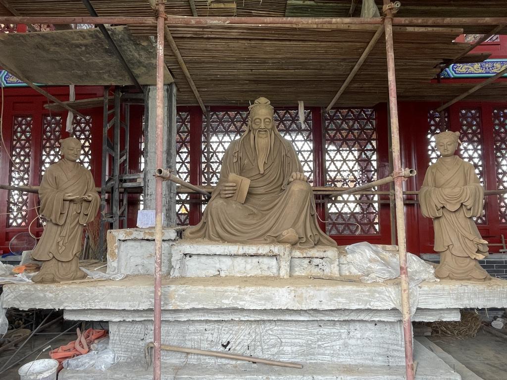 在鸡鸣城月老宫项目制作过程中,也让很多学生参与到了制作过程当中去,通过实践教学班的模式,让学生充分的把理论知识与实践操作结合起来,河北美术学院真正做到了理论与实践的融合贯通,在传授学生传统雕塑造像制作技巧的同时,也让学生切身感受到了中国传统艺术与文化的深厚魅力。