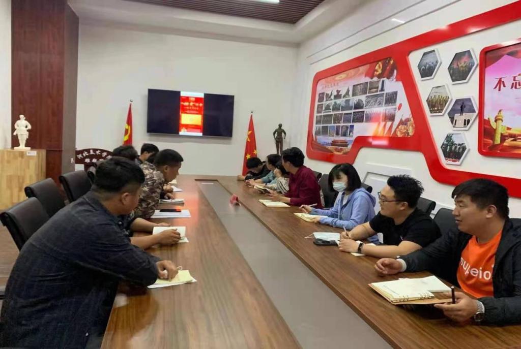 2021年5月17日雕塑院直属党支部副书记王春林在文峰塔一楼党员活动室全体党员和积极分子学习“四史讲堂——改革开放史”课程内容。同时也细讲了发展党员工作流程及注意事项和中共河北美术学院委员会发展党员工作实施细则。