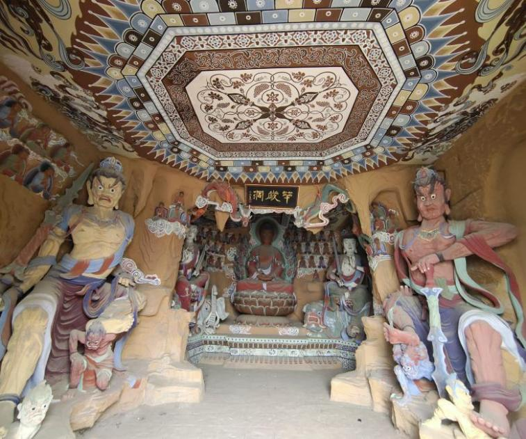 125窟为华严洞,于2022年1月彩绘完成,窟内建造分为主室和前室,主室塑华严三圣,分别是释迦牟尼、文殊、普贤及周围90尊悬塑小造像;前室塑两尊金刚力士像。窟内造像采用现代水泥材料,通过雕、刻、塑三种方法制作完成,气势恢宏。